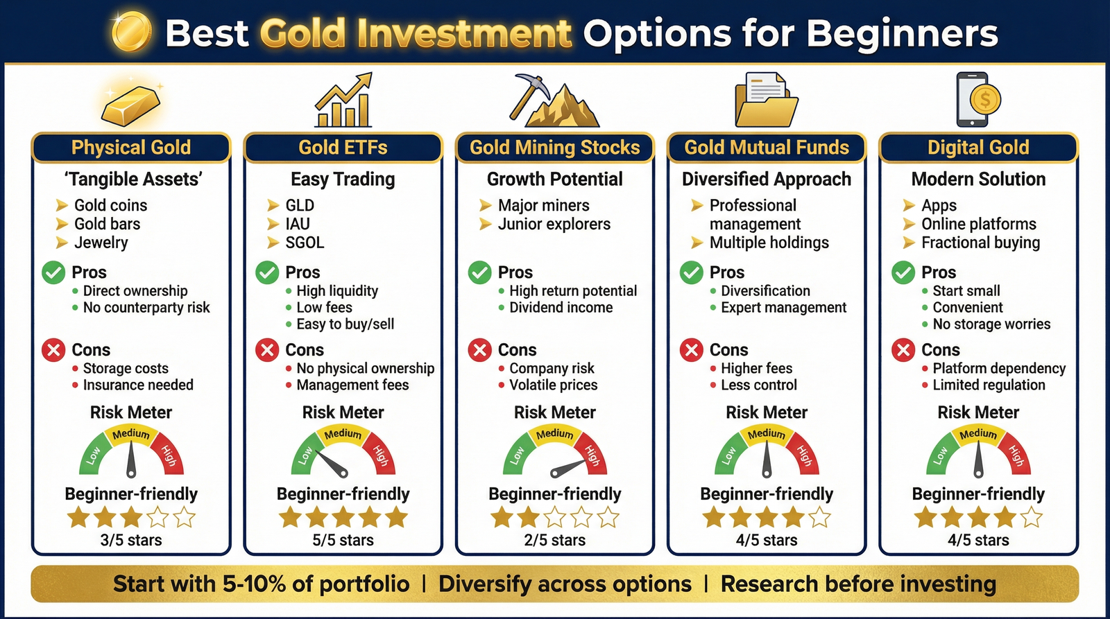 Those worried about currency devaluation or economic instability might go as high as 15%. Avoid putting more than 20% in gold unless you have specific reasons, since gold doesn’t generate income or dividends like stocks and bonds. Diversification across asset classes remains crucial for long-term wealth building.